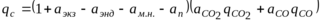 - тепловые эффекты экзо- и эндотермических реакций, потери с механическим недожогом и в окружающую среду, выраженные в долях от теплоты сгорания;