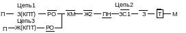 В случае перегорания лампы зеленого мигающего огня рельсовая цепь ЗП вместо кода З кодируется кодом Ж. Реле Т в этом случае включается по цепям 3 и 2.