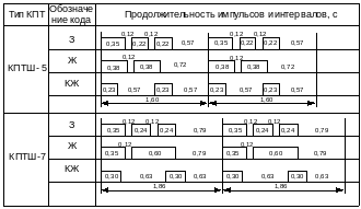 Рис. 2. Числовые коды, вырабатываемые трансмиттерами типа КПТ.