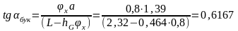 tgαn = b/hG = 930/464 =4,766; αn =63º30′.