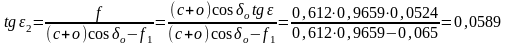 f2 = [(с + о)cosδo– f1] tg ε2=(0,612∙0,9659–0,065)∙0,0588= 0,031.