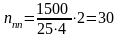 число платформ, зайнятих одним пакетом (при рейках довжиною 25 м - К=2).
