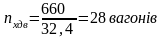 довжина хоппер-дозаторного вагону. Необхідна кількість хоппер-дозаторних вагонів визначається по формулі