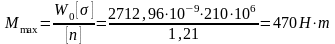 Mmax=129230.65 Hm=12.923*10^5кг см