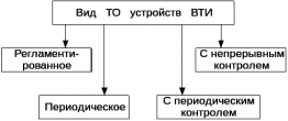 Таким образом, виды ТО устройств ВТИ несколько отличаются от видов ТО устройств ЖАТ. Во – первых, регламентное ТО устройств ВТИ должно проводиться с учетом их наработки. Во – вторых, для устройств ВТИ вводится дополнительный вид ТО – периодическое, которое по своей сути аналогично регламентному ТО устройств ЖАТ.
