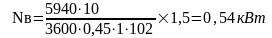 η в – к.п.д вентилятора, принимаем ηв = 0,45