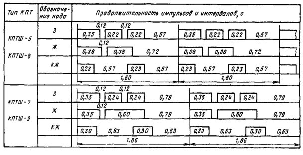 Рис 7. Числовые коды, вырабатываемые трансмиттерами типа КПТ