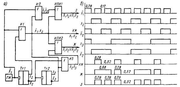 Рис. 11. Логическая схема и временная диаграмма формирователя импульсов