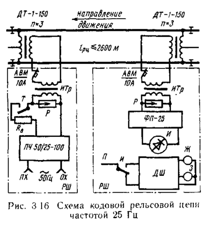 Рис.4 Схема кодовой рельсовой цепи частотой 25 Гц