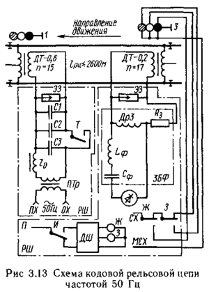 Рис. 3 Схема кодовой рельсовой цепи частотой 50 Гц