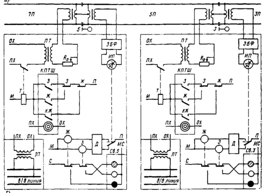 Рис. 8 Схема двухпутной автоблокировки переменного тока для участков с односторонним движением