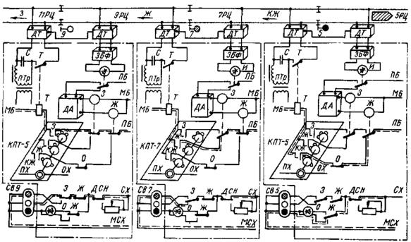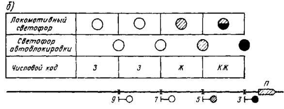 Рис. 2 Схема, поясняющая построение трехзначной кодовой автоблокировки