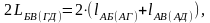 Определяем двойную длину участков обращения БВ и ГД грузовых и пассажирских локомотивов по формуле