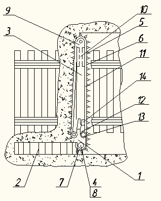 которых направляющие 11 с кронштейнами 12 могут быть зафиксированы на раме 3, на которой также выполнены отверстия пальцев 14.