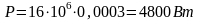Мощность, необходимая для привода цилиндра P, Вт: