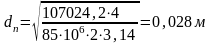 Диаметр стержня dст, м: