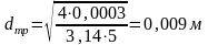 . Диаметр трубопровода dтр, м:
