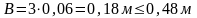 Ширина конвейерной ленты В при опоре на горизонтальные ролики, м: