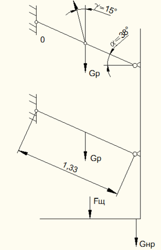 Рисунок 7 – Расчетная схема к определению усилия в гидроцилиндре подъема