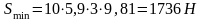 Окончательно SMIN =S1 принято 1736 Н.