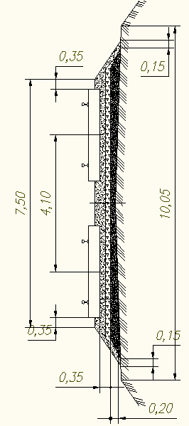 где A- длина балластной призмы по верхнему основанию (рисунок 20), A = 3,75м; B- длина балластной призмы по нижнему основанию (рисунок 20), B = 5м; h