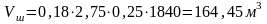 где W – объем балласта необходимый для засыпки РШР на один километр пути, м