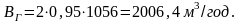где вэ – эксплуатационная часовая производительность техники, вэ=2,0м3./маш.-ч; k - коэффициент, учитывающий непредвиденные внутрисменные простои по организационным причинам (k=0,95); Тг - годовой фонд времени работы техники, маш.-ч/год: