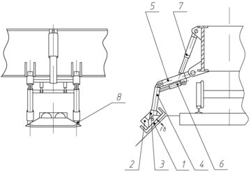 В рабочем положении плиты уплотнителя откосов располагаются по сторонам пути (рисунок 1.1). Своими рабочими уплотнительными поверхностями они контактируют с откосами балластной призмы, производя при движении машины вибрационное обжатие и формируя плечо требуемых размеров и угол наклона откоса.