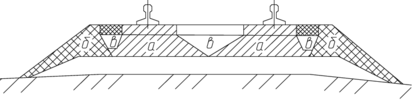 Основная виброплита машин непрерывного действия (ВПО – 3000, ВПО – 3-3000 и т.д.) уплотняет основную массу балласта по рельсошпальной решёткой (рисунок 1) и не обеспечивает уплотнение балласта под концами шпал, на откосах балластной призмы. Но и уплотнители откосов, установленные на машинах ВПМ непрерывного действия не решают полностью этой проблемы, а именно балласт не подаётся под торцы шпал.