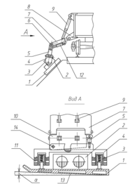 На основе известных изобретений и аналитических соображений предлагается следующий вариант устройства по уплотнению балласта со стороны торцов шпал и под их концами, устанавливаемого на ВПМ непрерывного действия, в частности на ВПО3 – 3000 (рисунок 1.4).