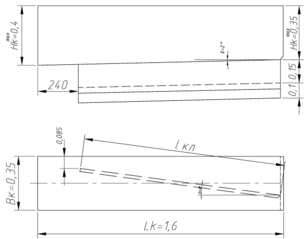 Длина клина l = 1, 35 м найдено из условия обеспечения подачи балласта требуемого объёма под концы шпал.