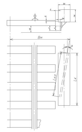 где LК – длина корпуса, м (конструктивно принято Lk=1,6 м); γ – угол наклона нижней стенки плиты к горизонтальной плоскости, град (γ=2˚).