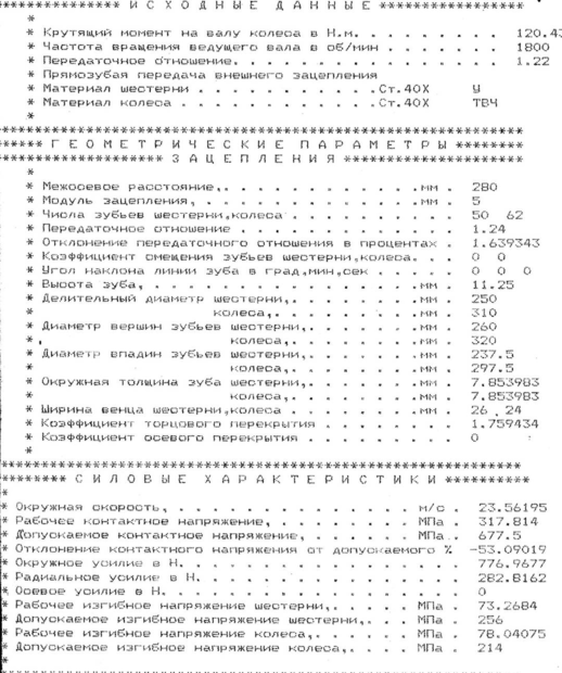 2.3.3 Результаты расчёта зубчатой передачи, выданные ЭВМ