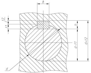 Размеры призматических шпонок (рисунок 2.12): ширина b, высота h, глубина паза t1 и ступицы t2 выбираем в зависимости от диаметра вала.