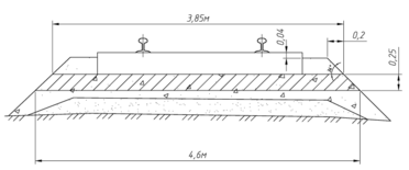 Рисунок 3.4 – Схема к расчету площади поперечного сечения досыпаемого балласта