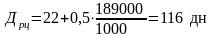Так как продолжительность простоя автомобиля в ТО и ТР в Положении предусматривается в виде общей удельной массе на 1000 км, то количество дней простоя автомобиля за цикл Дрц может быть выражена в следующем виде: