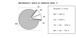 Диаграмма показывает, что 81% общей протяженности трассы представляет собой прямую в плане.
