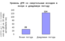 Согласно международной практике во время осадков количество ДТП увеличивается (Диаграмма 17). Отмечается также, что неожиданные осадки после продолжительного сухого периода вызывают резкое увеличение количества ДТП.