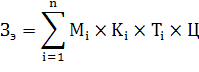 Цi – цена за единицу I – го вида материального ресурса, руб;