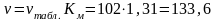 По табл.21 [5] для данных t и S выбираем табличную скорость резания м/мин.