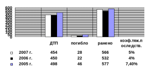 1.6 Анализ аварийности по городу Йошкар-Ола за 2007, 2006, 2005 года