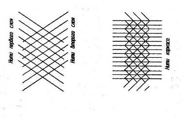 Технология сборки шины существенно зависит от ее конструкции. Различают диагональные и радиальные шины. В радиальных шинах нити корда, проходя от одного борта до другого, располагаются в диаметральных плоскостях, т. е. имеют радиальное направление. В диагональных шинах нити корда образуют с диаметральной плоскостью угол порядка 50°. Каркас диагональной шины всегда имеет четное число слоев корда, послойно имеющих зеркальное направление нитей. Наложенные друг на друга нити корда в просвете образуют ромбы (рис. 2.46, а). Ромб является легкодеформируемой фигурой, что обеспечивает высокую эластичность шины. Однако пересекающиеся нити могут перетирать друг друга, и для повышения прочности приходится в каркас вводить много слоев корда. Это утяжеляет шину, увеличивает гистерезисные потери при деформации шины при ее качении, вызывает нагрев шины и увеличение коэффициента сопротивления качению.