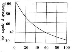 Внутреннее давление воздуха в шине весьма существенно влияет на ее долговечность. Оптимальное значение давления воздуха устанавливается заводом-изготовителем на основании доводочных испытаний автомобиля с учетом требований управляемости, плавности хода и долговечности самой шины. Усреднено, характер влияния давления воздуха в шине на ее ресурс показан на рис. 2.48.