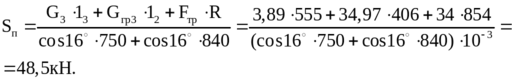 ∑М0.=G313+Gгр3•12+ Fгц R-Sп•con16°•750 - Sп con16°•840=0;