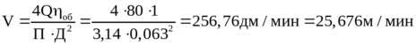 Де К=d/Д – приймаємо по таблиці 2 (методичні вказівки); К=0,5. d =0,5•100=50 мм. Значення d=50мм відповідає ряду нормальних діаметрів по ГОСТ 12447-80. Знаючи витрату Q масла при ходу поршня визначаємо швидкість V з рівняння: