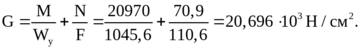 При розрахунку напруг значення силових чинників беремо з таблиці 4.2. Оскільки перетин I-I має вісь симмерії біля осі у, те максимальне значення нормальної напруги визначається по формулі: