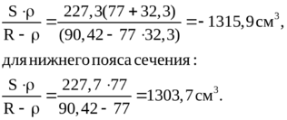 | Sρ/Z на нижньому поясі | - | 1303,7 | 1303,7 | 1894,1 | 2346,5 | ||||
