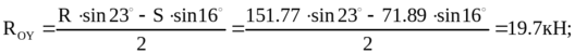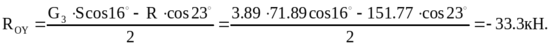 Roy=1/2(34,97•cos54° - 48,5• sin16°)=3,59 кН;