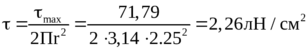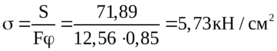 τ=R0/F=38,69/2,4=2,4 кН/см2.
