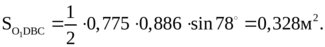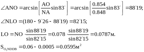SNOА=1/2•NO•АO•sin830=1/2•0.078•0.854sin830=0.033м2.